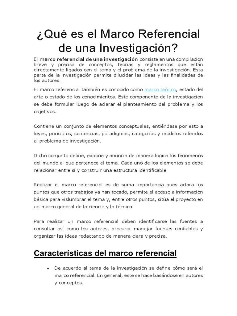 Que Es El Marco Referencial De Una Investigacion