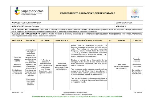 Procedimiento Causacion Y Cierre Contable