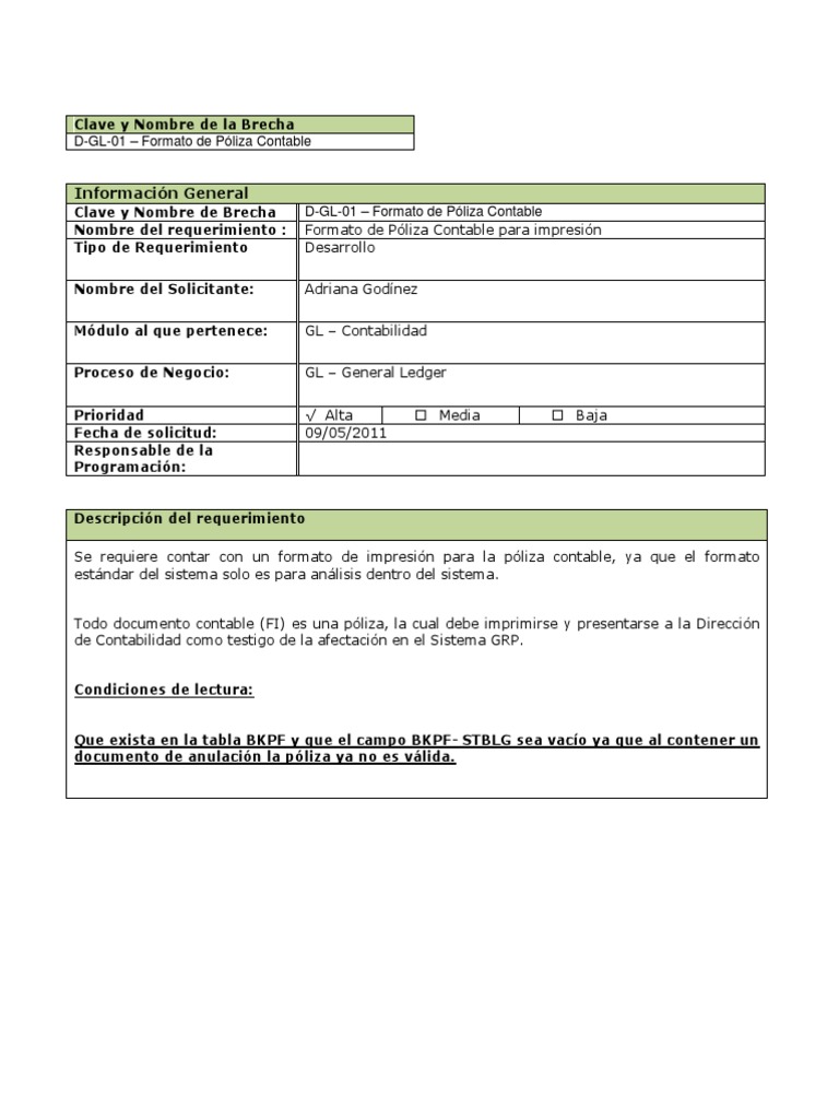 Formato De Poliza Contable