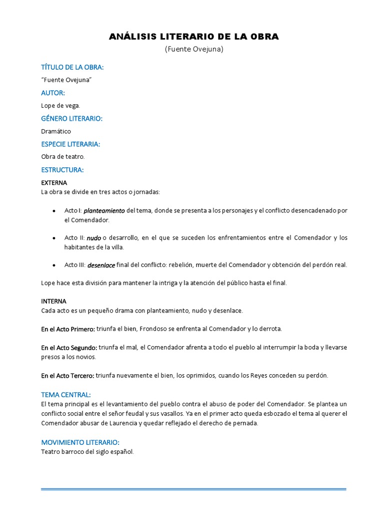 La guía de estudio de Fuenteovejuna contiene una biografía de Lope de Vega ensayos literarios cuestionarios temas principales personajes y un resumen y análisis completo. Fecha de la muerte. ANALISIS LITERARIO DE LA OBRA FUENTEOVEJUNA BIOGRAFIA DEL AUTOR.