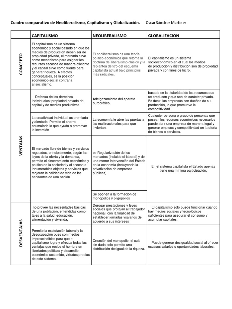 Cuadros Sinopticos Sobre Neoliberalismo Ventajas Y Desventajas Cuadro Comparativo