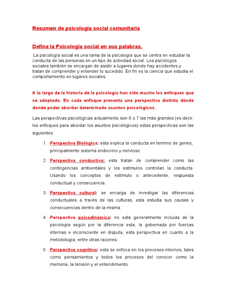 Resumen De Psicologia Social Comunitaria Pdf Psicologia Social Comportamiento