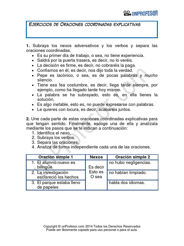 Ejercicio Oraciones Coordinadas Explicativas Pdf