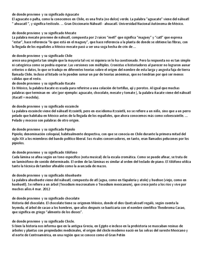De Donde Proviene Y Su Significado Aguacate Pdf Aguacate Nahuatl